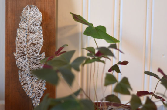 Då och då knyter jag fortfarande några makraméknutar. Den här gången blev det en väggampel som hänger i en gammal galge igen. Det finns liksom ingen hejd på hur många krukväxter som behöver få plats…